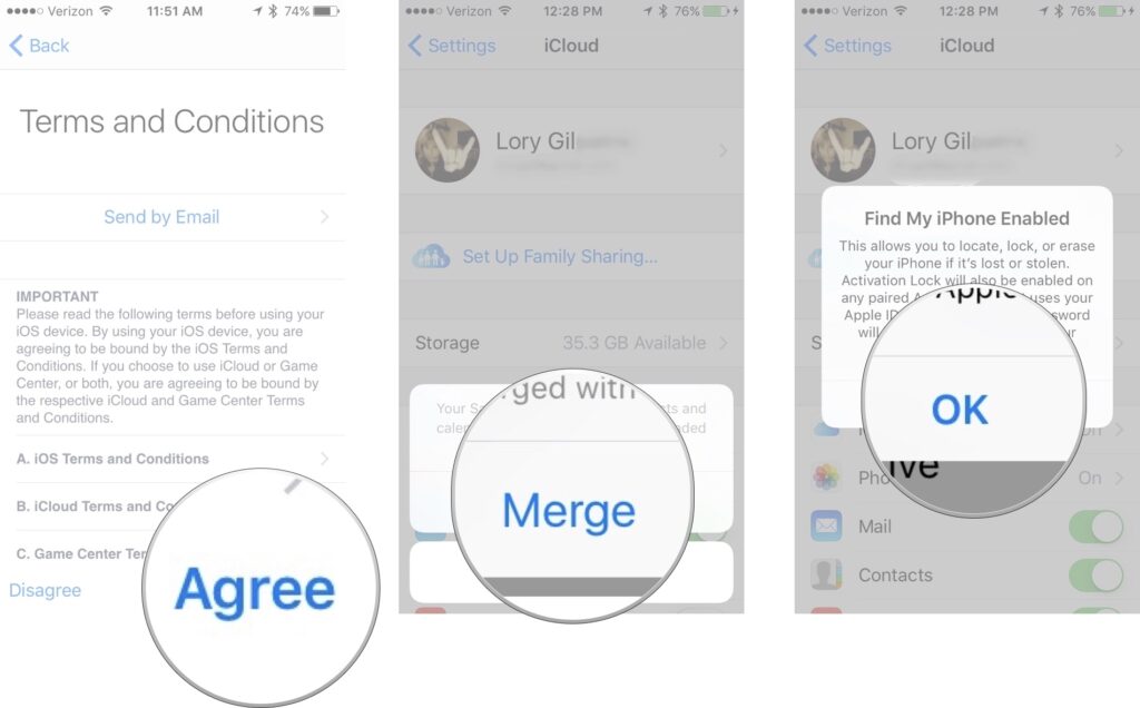5. Tap Merge or Don’t Merge to sync iCloud data from Safari, reminders, contacts and calendars.